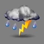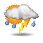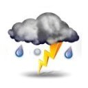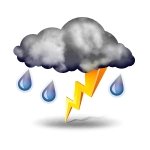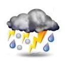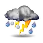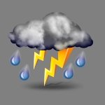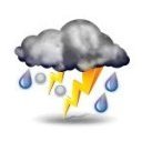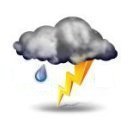 Elektrische Entladung mittels Blitz und Donner, in der Regel begleitet von kräftigem Regen, Hagel oder Windböen. Hohe Blitzfrequenz, ständiges Donnergrollen.